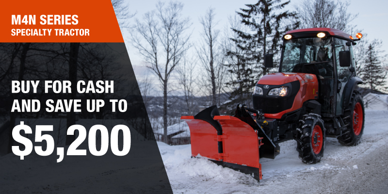 Rebate of $4,200 available on cash purchases of a new M4N Rops only. Rebate of $5,200 available on cash purchases of a new M4N Cab only. Offer valid until 03-31-2026.